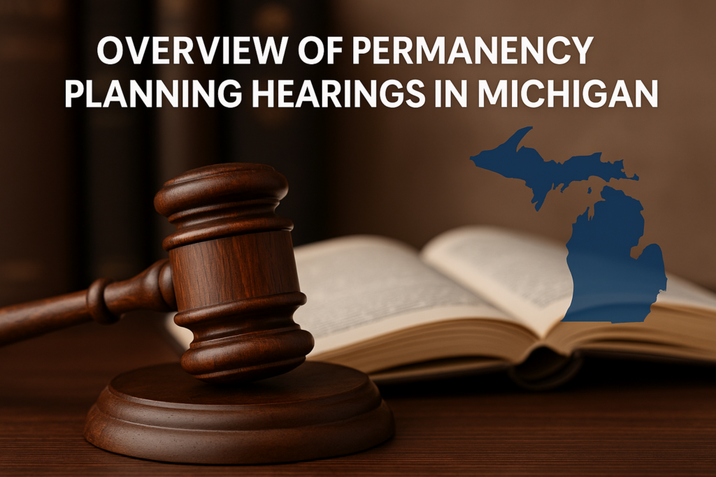 Under MCL 712A.19a and Michigan Court Rule (MCR) 3.976, a permanency planning hearing is a court hearing to review a child’s permanency plan and assess the progress of the parent or lack thereof. This could include: